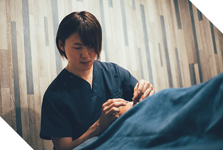 足ツボ、鍼、お灸を使い全身のツボにアプローチ。動きの悪い内臓を活動的にし、滞っている血液を全身に巡るようにしていきます。内側からの体調改善を目指します。